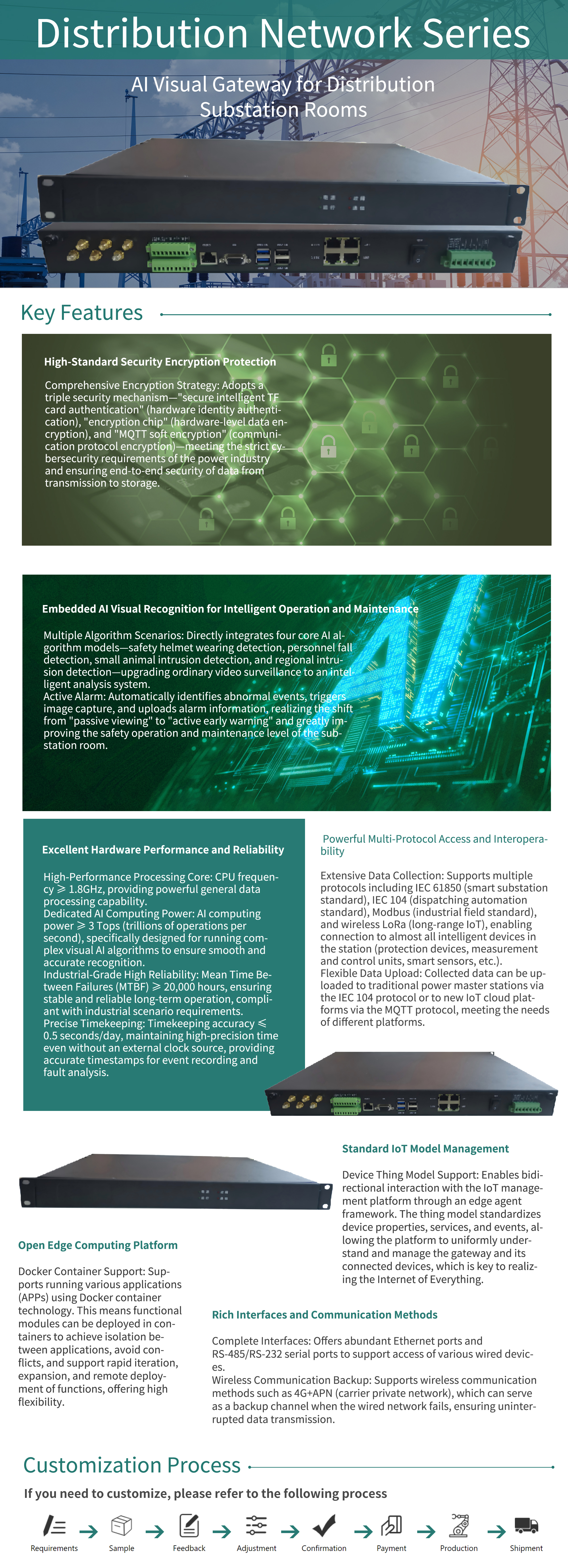 Interfaces: Comprehensive Ethernet ports, RS-485/RS-232, wireless 4G+APN, wireless communication