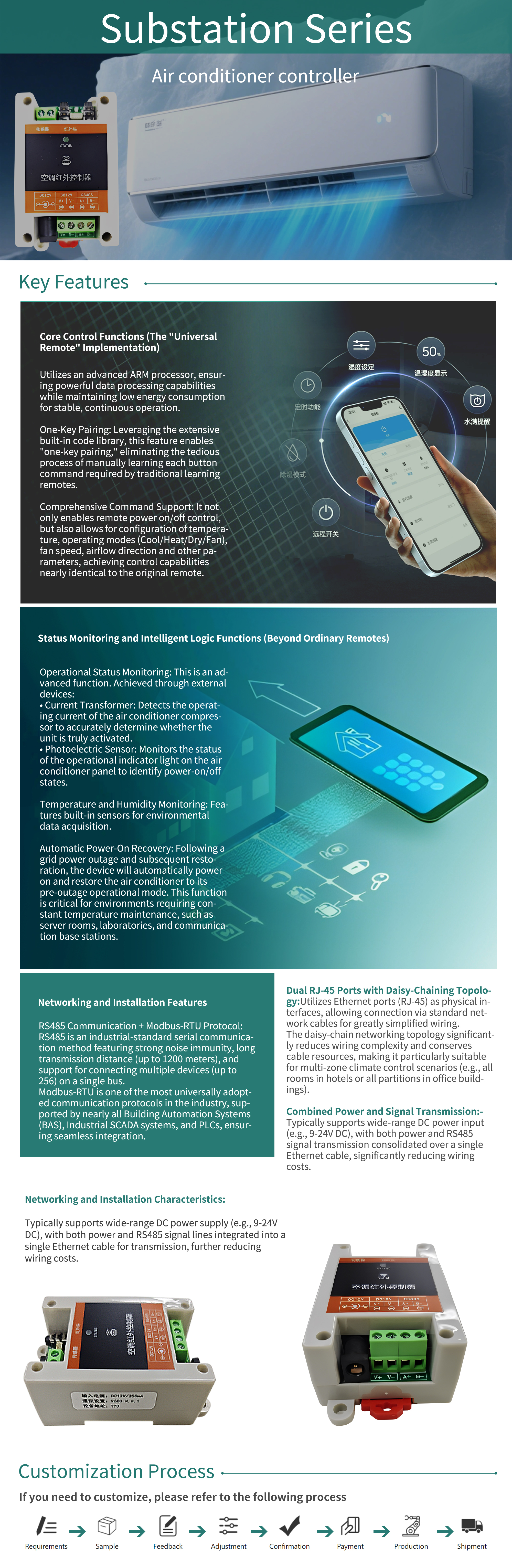 Incorporates temperature and humidity measurement functionality enabling high-temperature air conditioner restart;